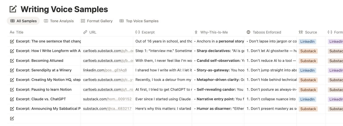 Ultimately, the key isn’t the tool. It’s the consistency. What you’re building is a corpus and a compass: your raw material (samples) plus the rules (profile + guide). It’ll keep evolving as you write, because your voice and tone may evolve too.